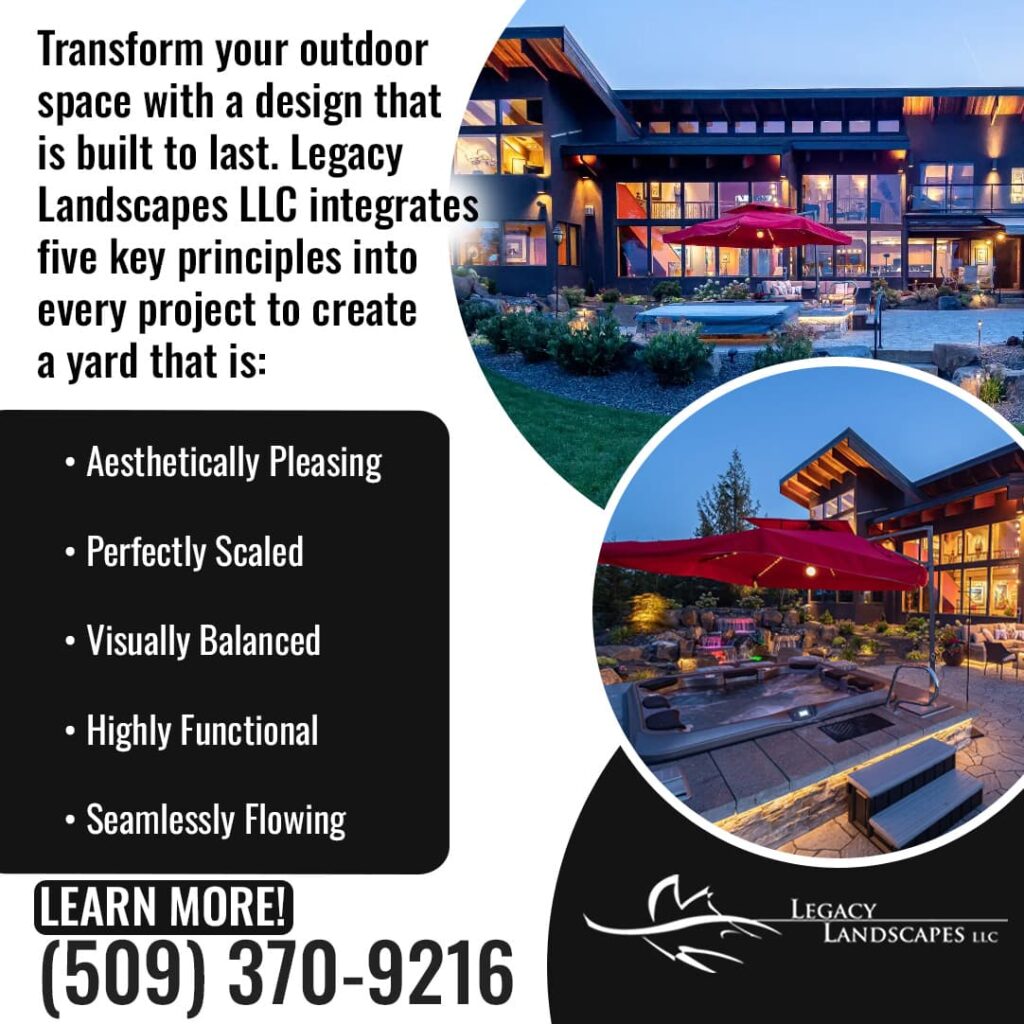 - Legacy Landscapes LLC uses five key design principles: Aesthetics, Scale, Balance, Function, and Flow, to guide every project.